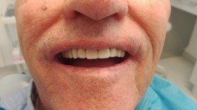 Metal ceramic teeth - Bonded with temporary cement for about a week, and then permanently cemented. (there are 2 dental tampons under the upper lip, that's why it looks puffy)
